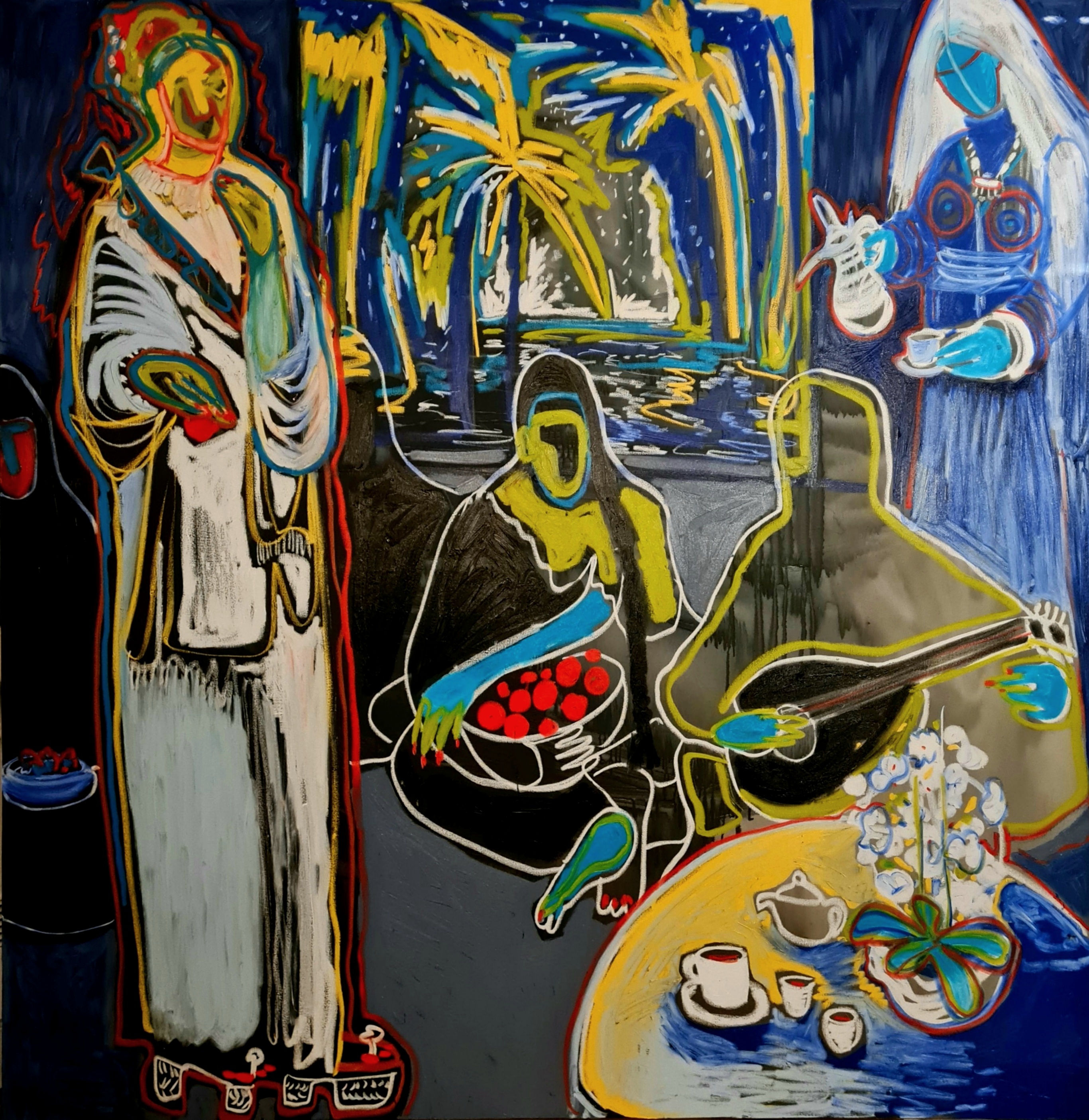The kindest mother-in-law, 100 w x 80 h cm, acrylic and pigment stick on canvas, 2022.