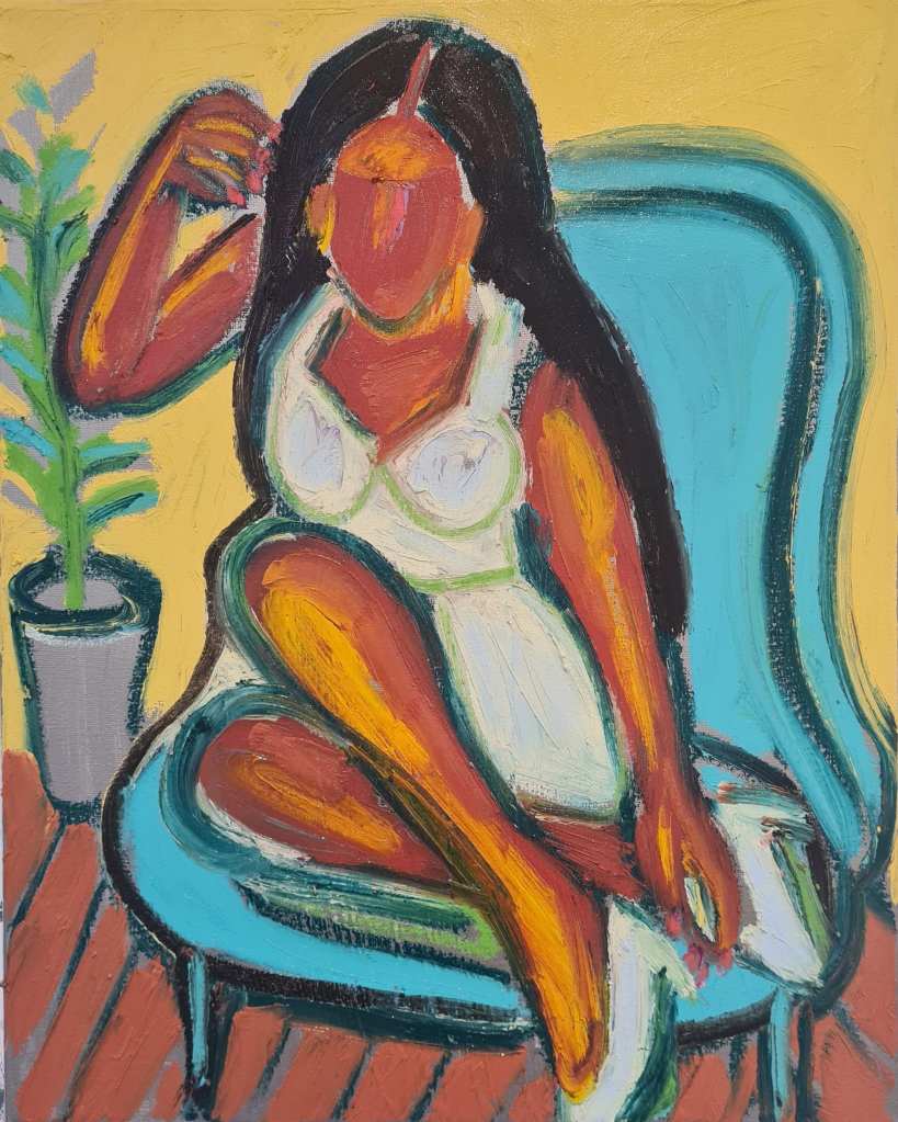 Crossed Legs, acrylic and pigment stick on canvas, 40 w x 50 h cm, 2022.The Thinker, acrylic and pigment stick on canvas, 40 w x 50 h cm, 2022.The Boss, acrylic and pigment stick on canvas, 40 w x 50 h cm, 2022.The Good Friend, acrylic and pigment stick on canvas, 35 w x 45 h cm, 2022.The Empath, acrylic and pigment stick on canvas, 35 w x 45 h cm, 2022.The Graduate, acrylic and pigment stick on canvas, 35 w x 45 h cm, 2022.The Entrepreneur, acrylic and pigment stick on canvas, 35 w x 45 h cm, 2022.The Peacemaker, acrylic and pigment stick on canvas, 35 w x 45 h cm, 2022.The Optimist, acrylic and pigment stick on canvas, 35 w x 45 h cm, 2022.