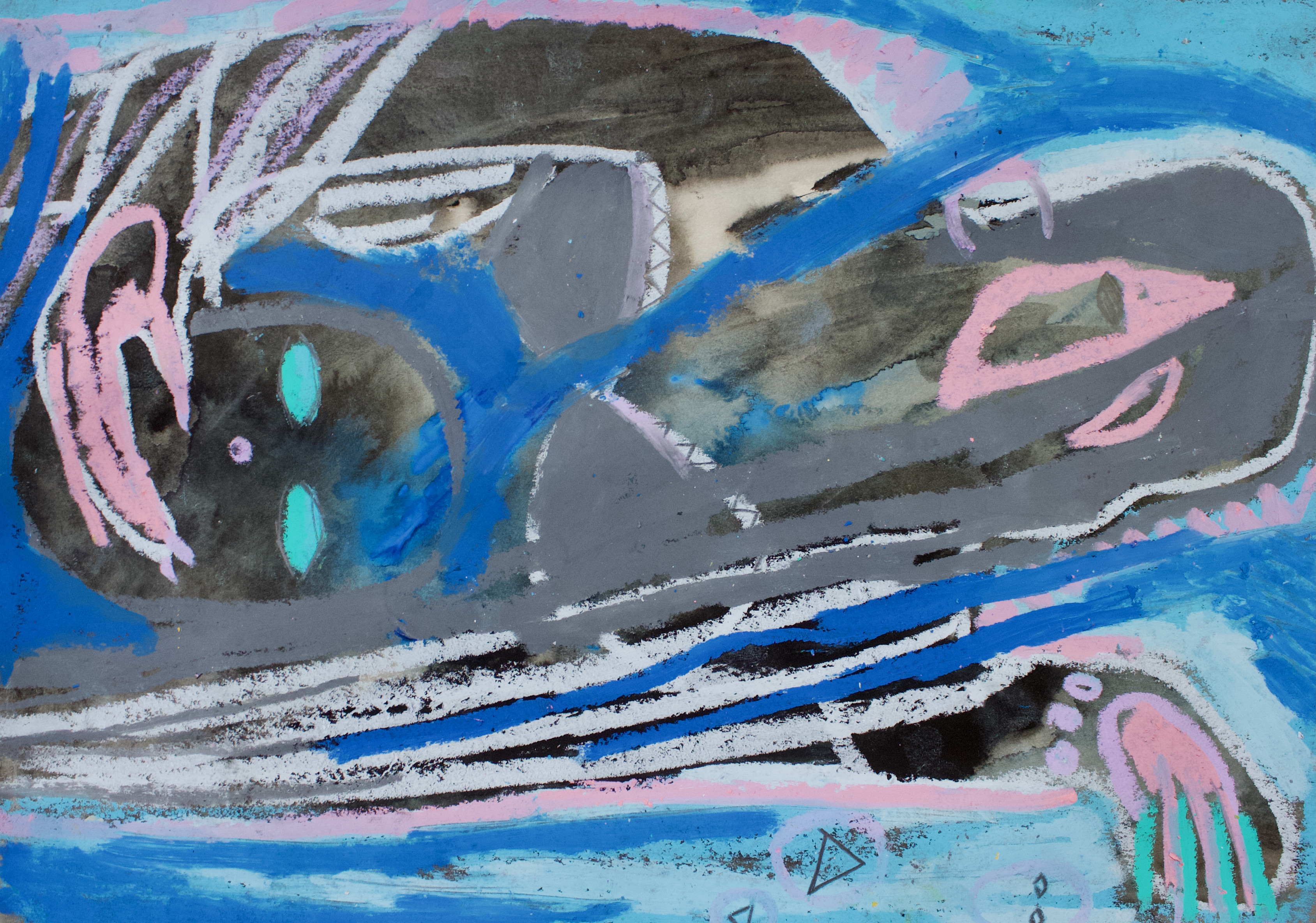 Memory of an echo, 22h x 30 w cm, watercolour, pencil and oil pastel on paper, 2022.