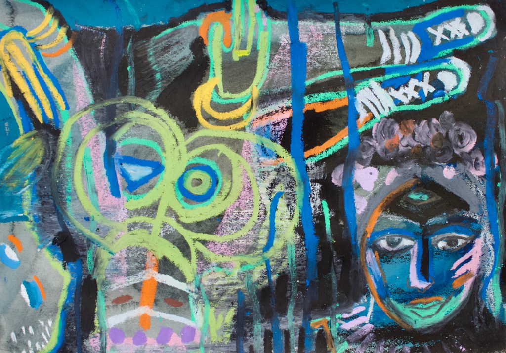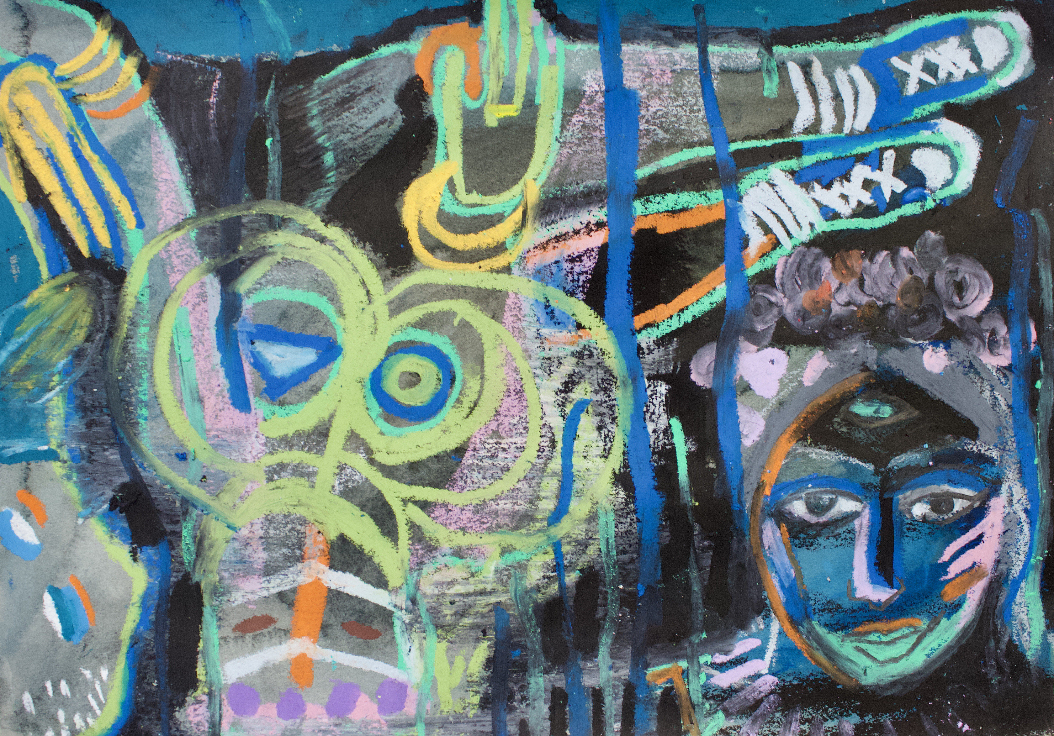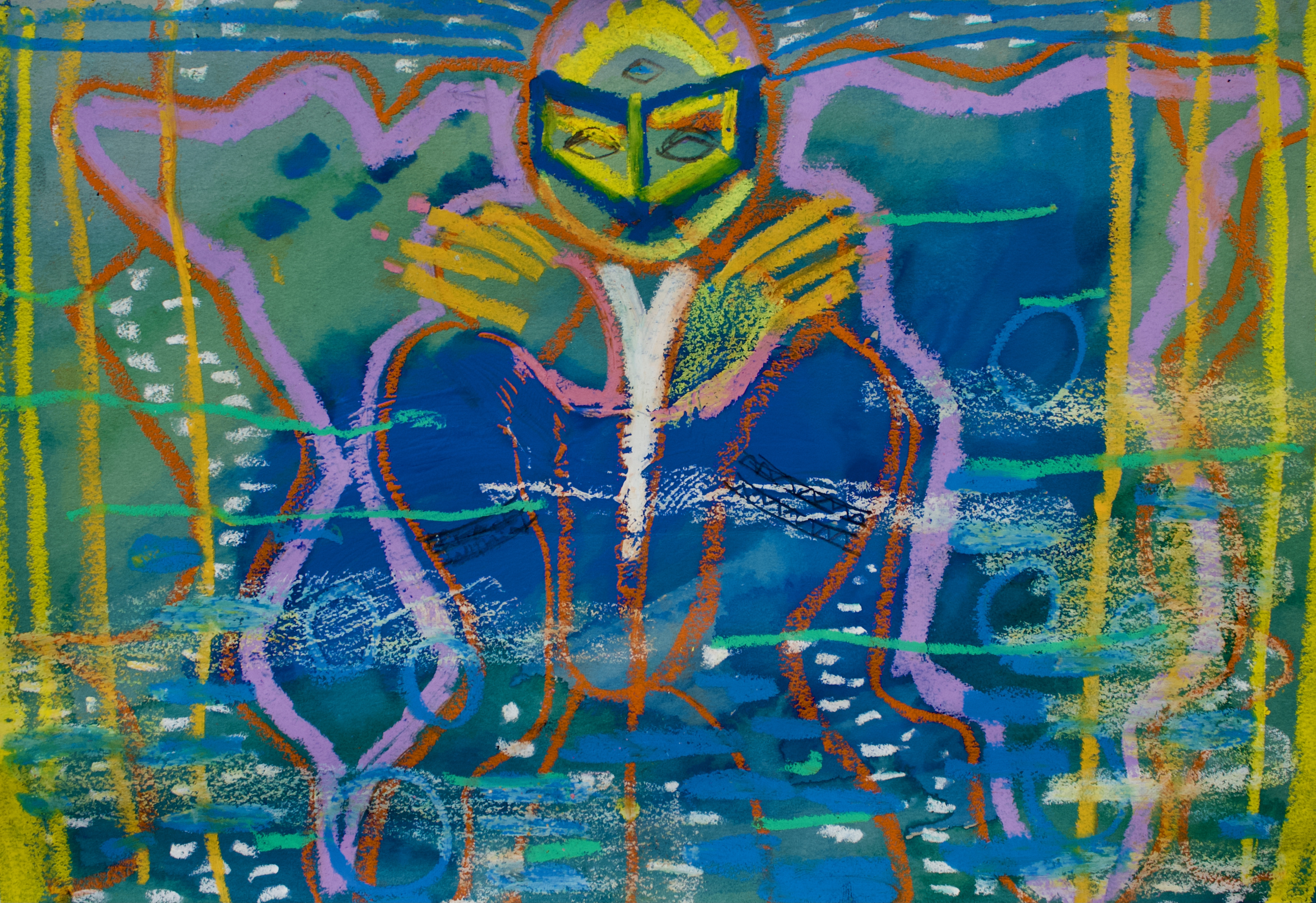 Muse, 22h x 30 w cm, watercolour, pencil and oil pastel on paper, 2022.