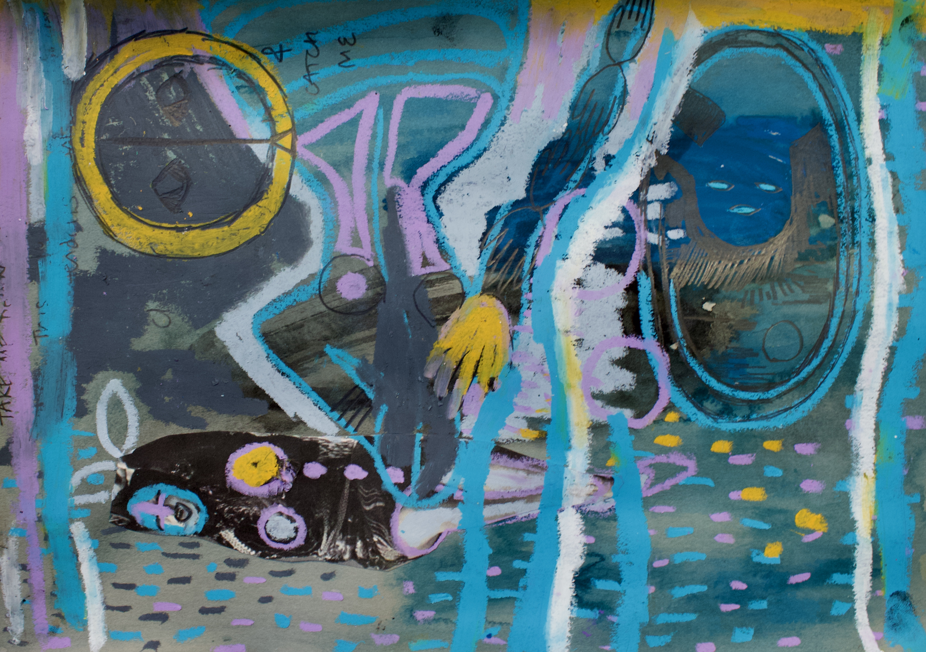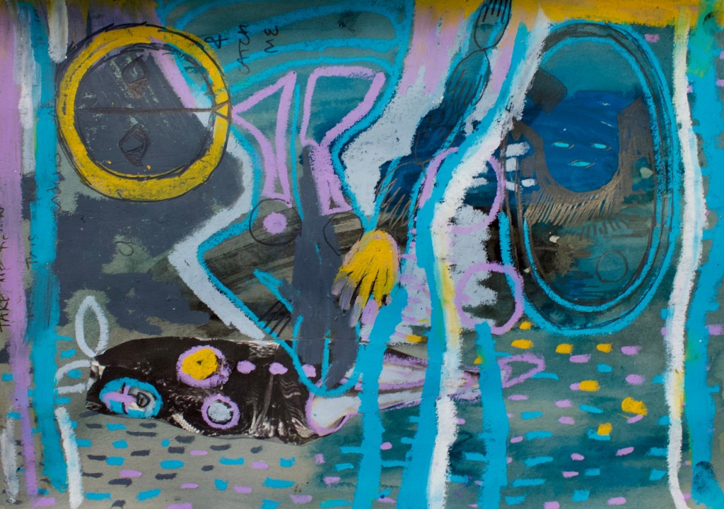 Reverberation, 22h x 30 w cm, watercolour, pencil and oil pastel on paper, 2022.