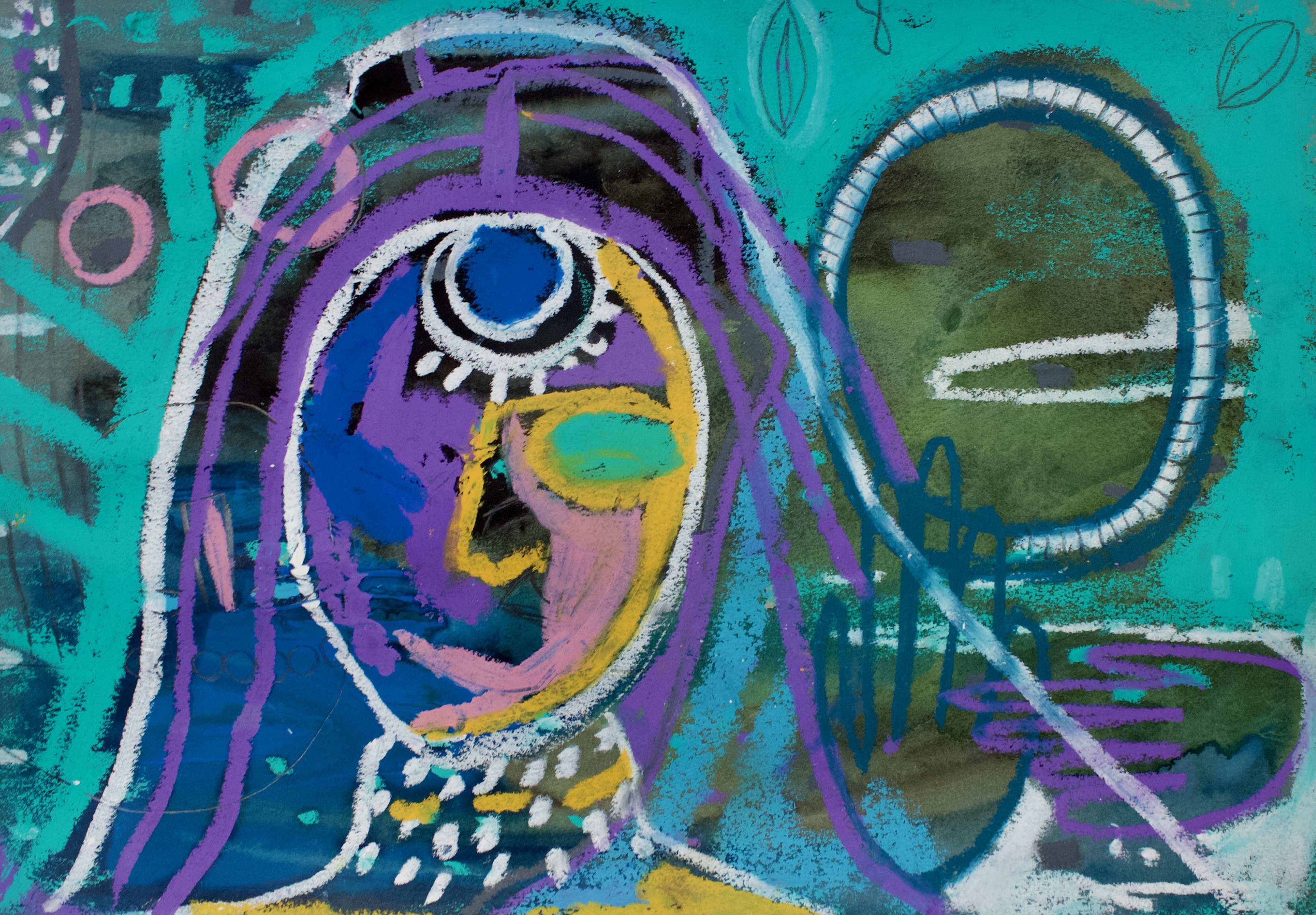 Third Eye, 22h x 30 w cm, watercolour, pencil and oil pastel on paper, 2022.