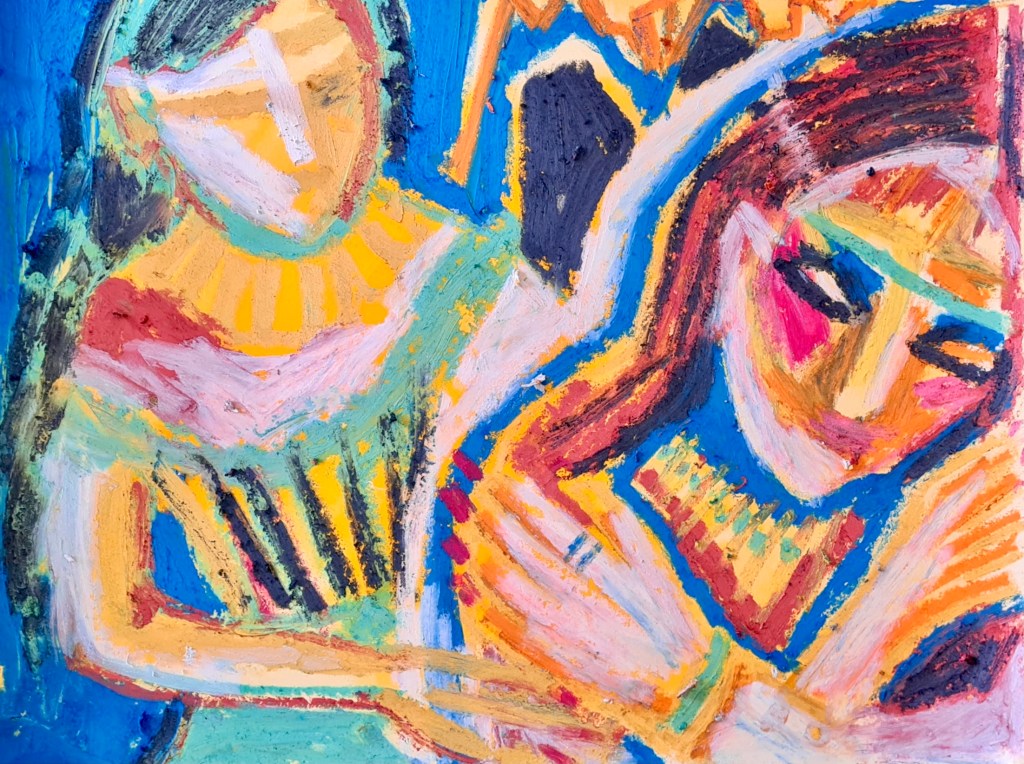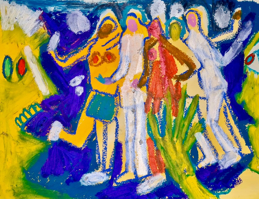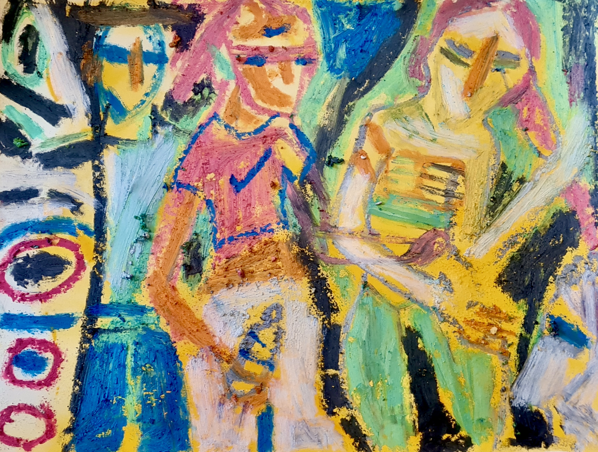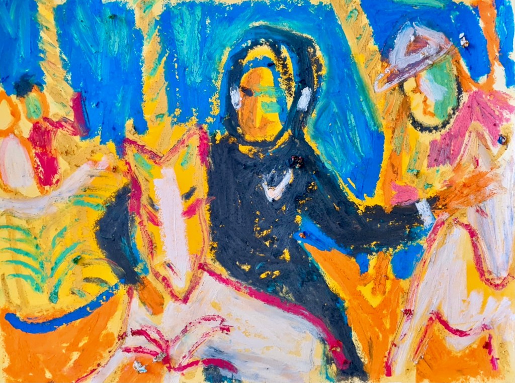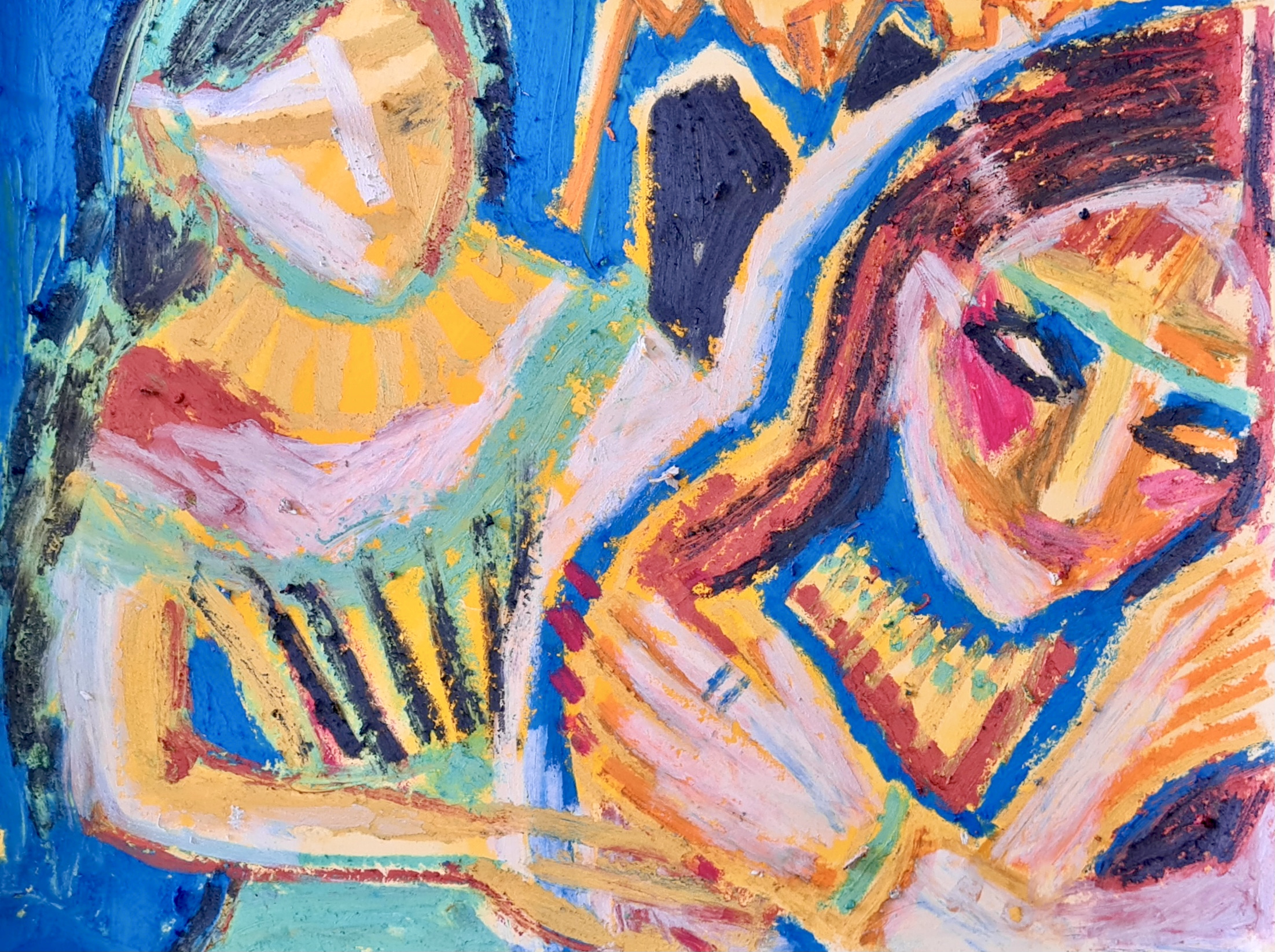 Melodies and mixed emotions, 22 h x 30 w cm, watercolour, salt, pencil and oil pastel on paper, 2022.