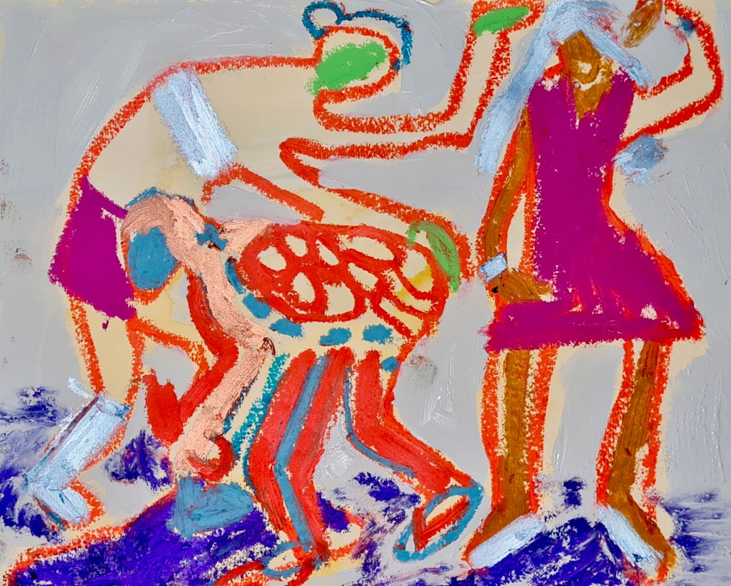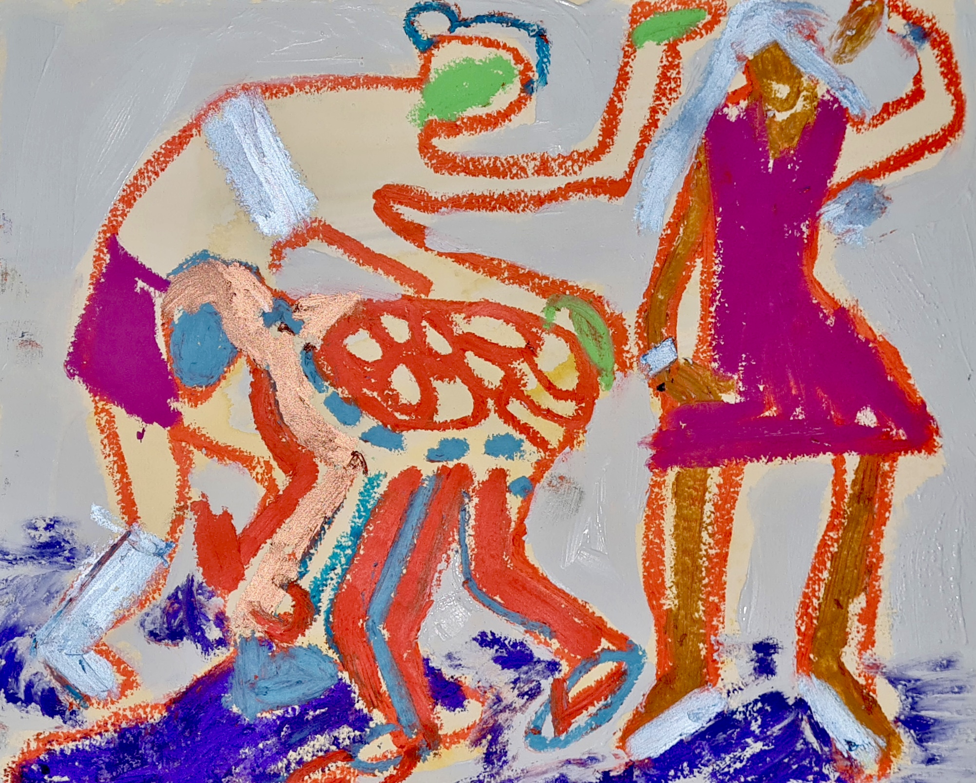 Acceptable behaviour, 22 h x 30 w cm, watercolour, salt, pencil and oil pastel on paper, 2022.