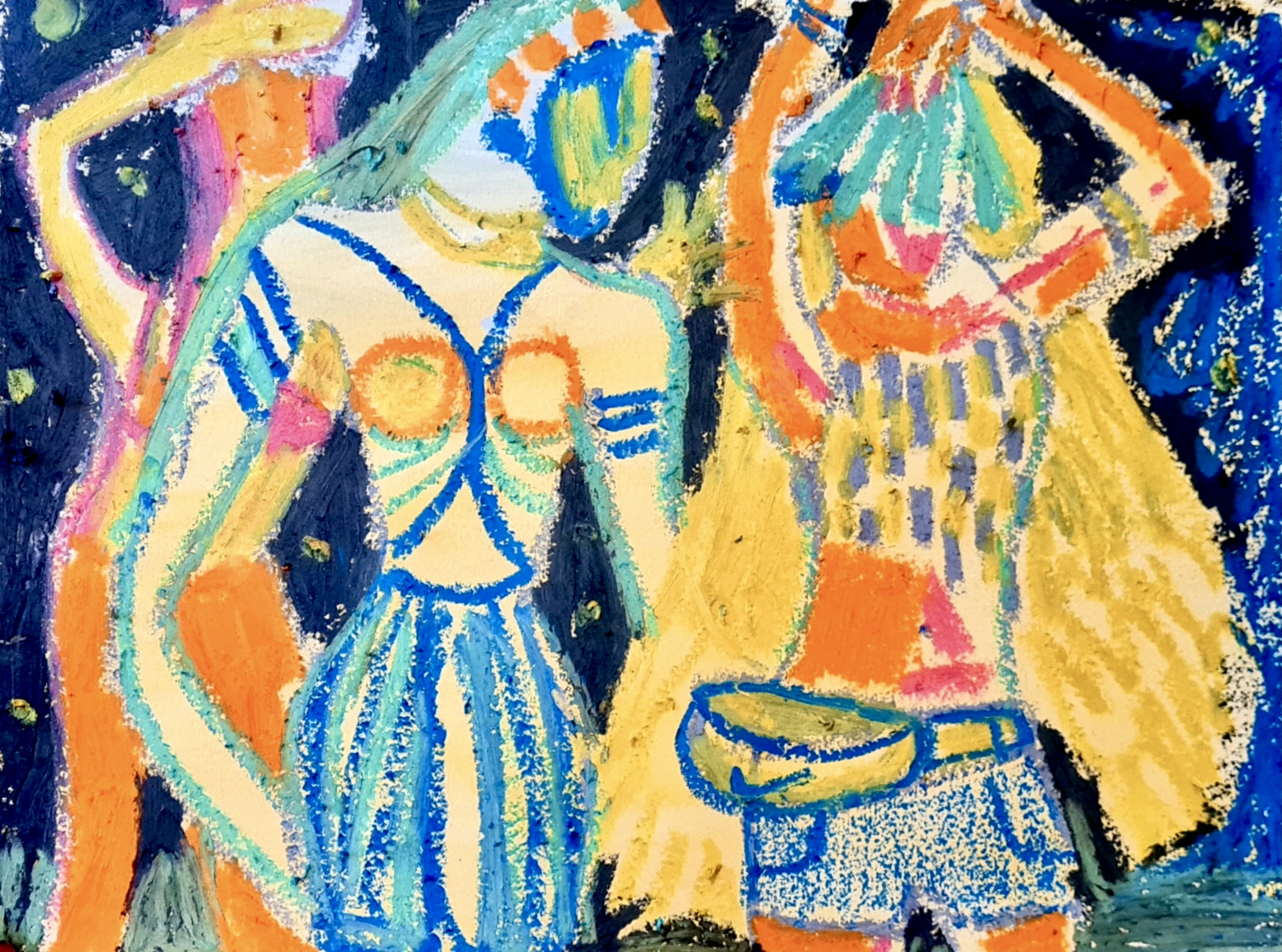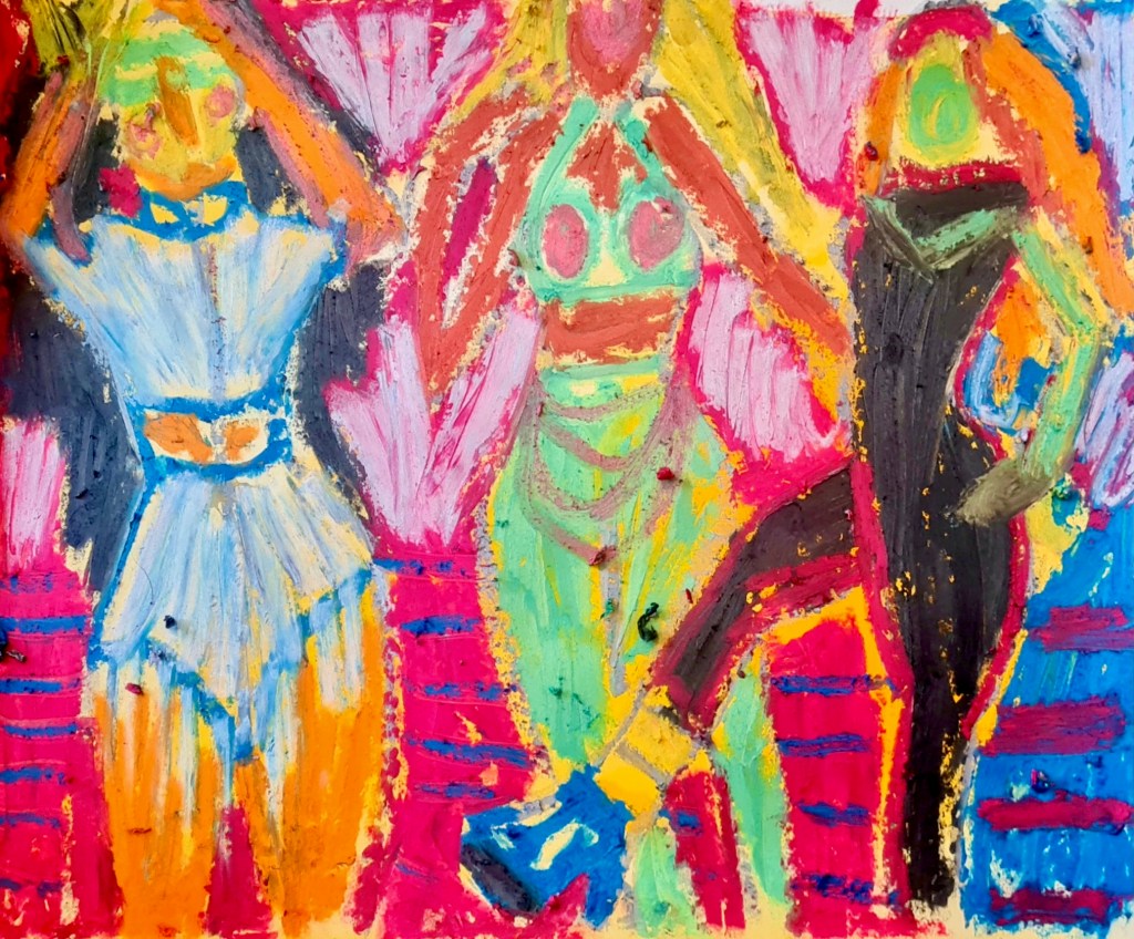 Hips, lips, glitter and you, 22 h x 30 w cm, watercolour, salt, pencil and oil pastel on paper, 2022.