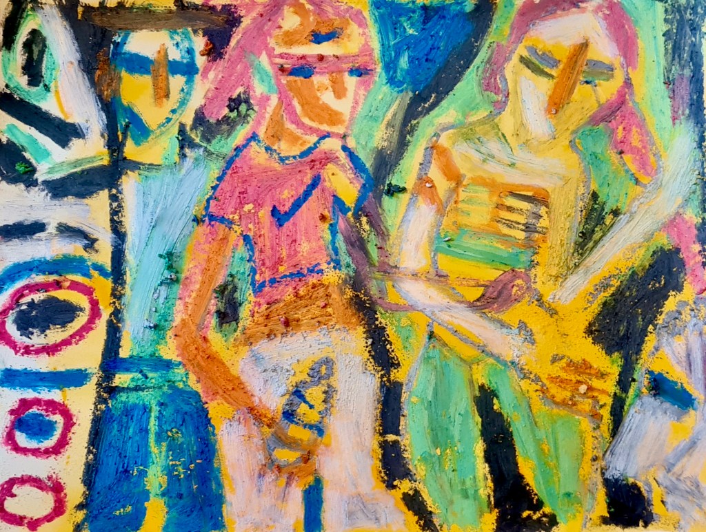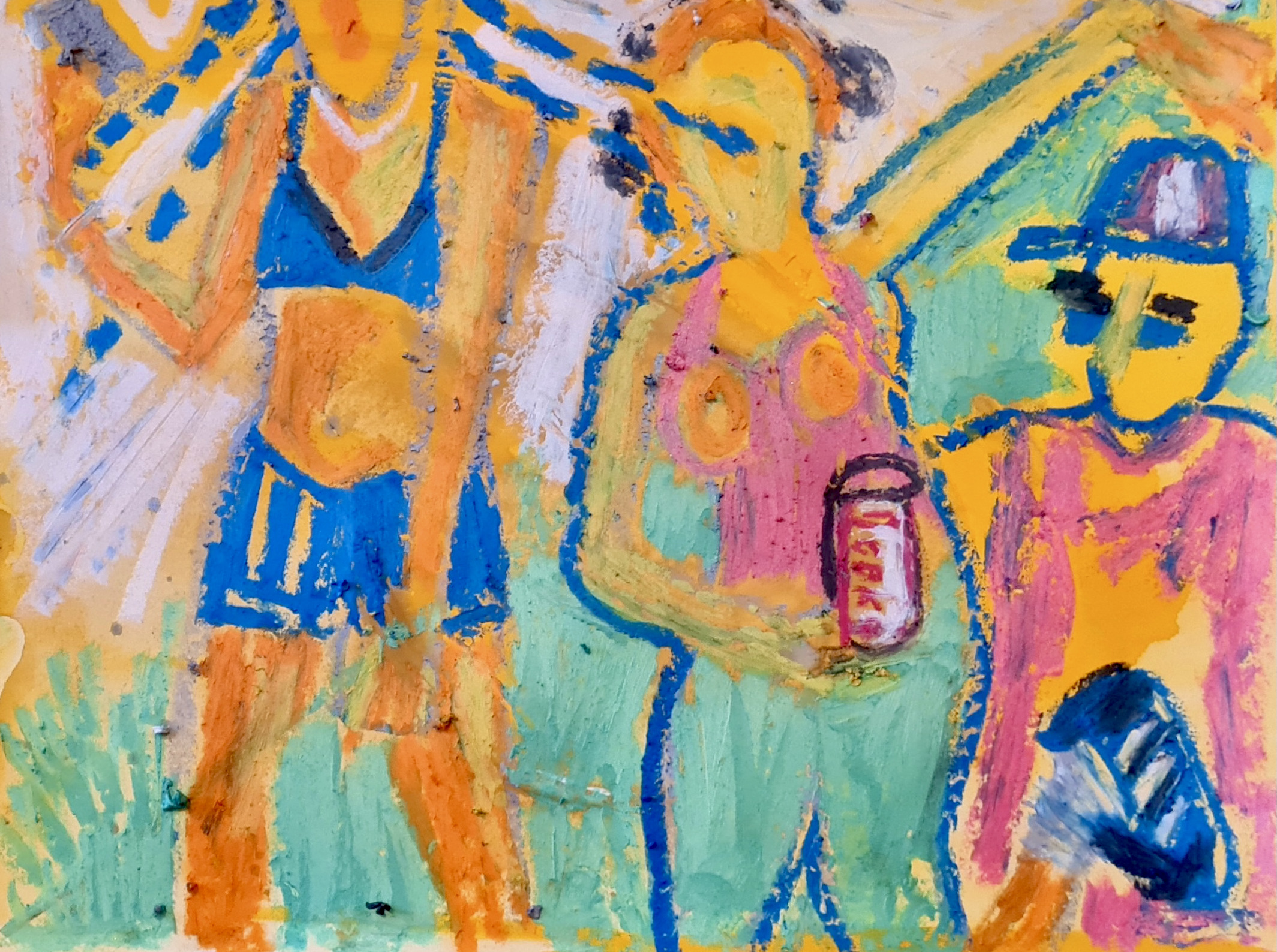 Making memories and taking selfies, 22 h x 30 w cm, watercolour, salt, pencil and oil pastel on paper, 2022.