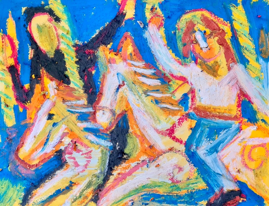 £3 carousel and queasy, 22 h x 30 w cm, watercolour, salt, pencil and oil pastel on paper, 2022.