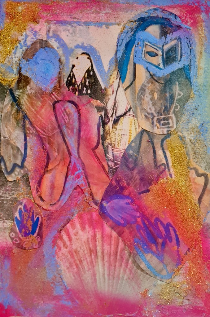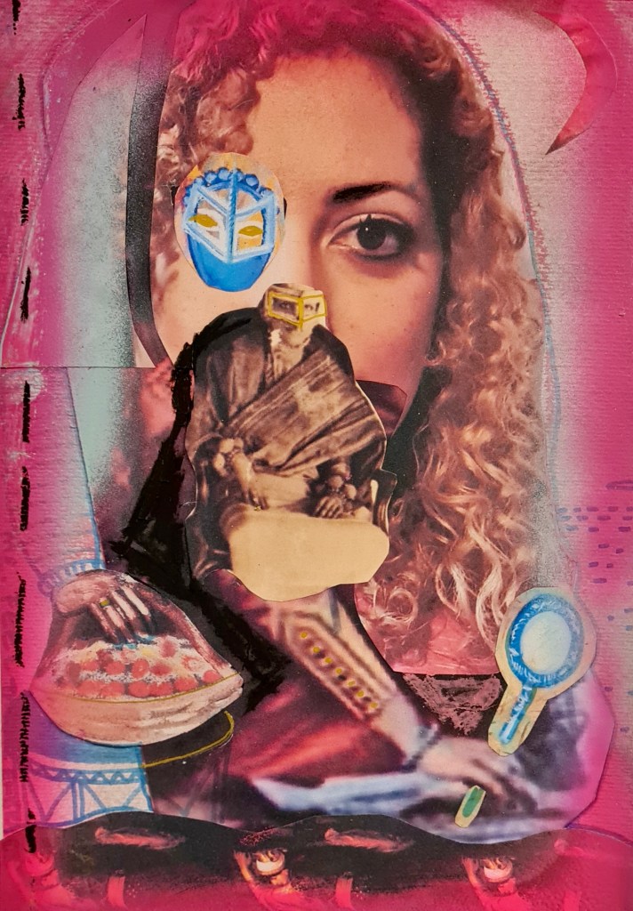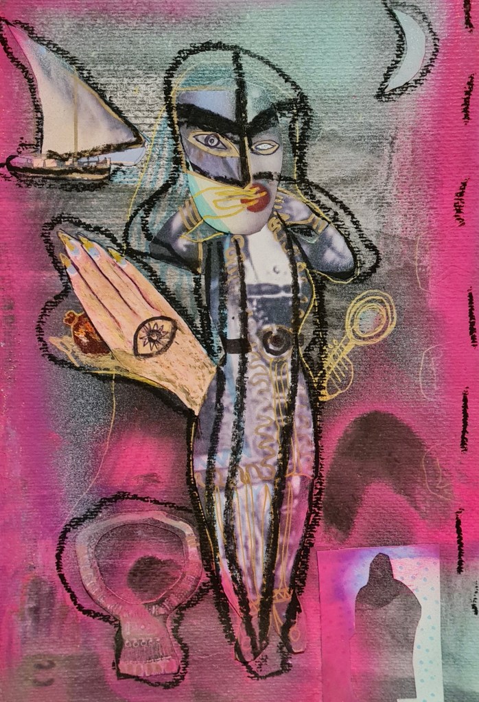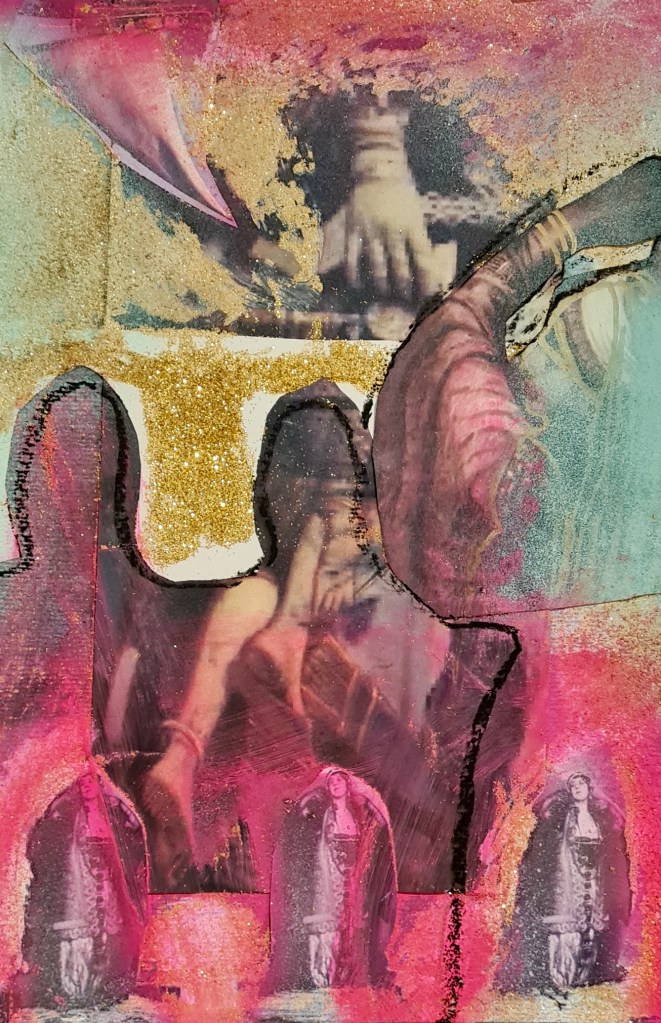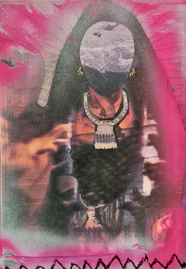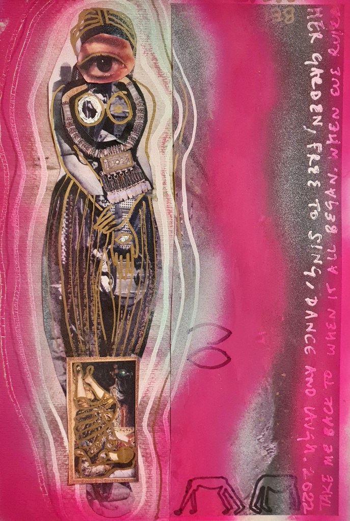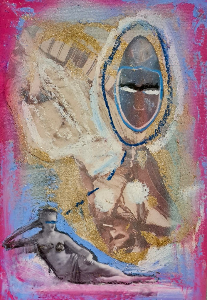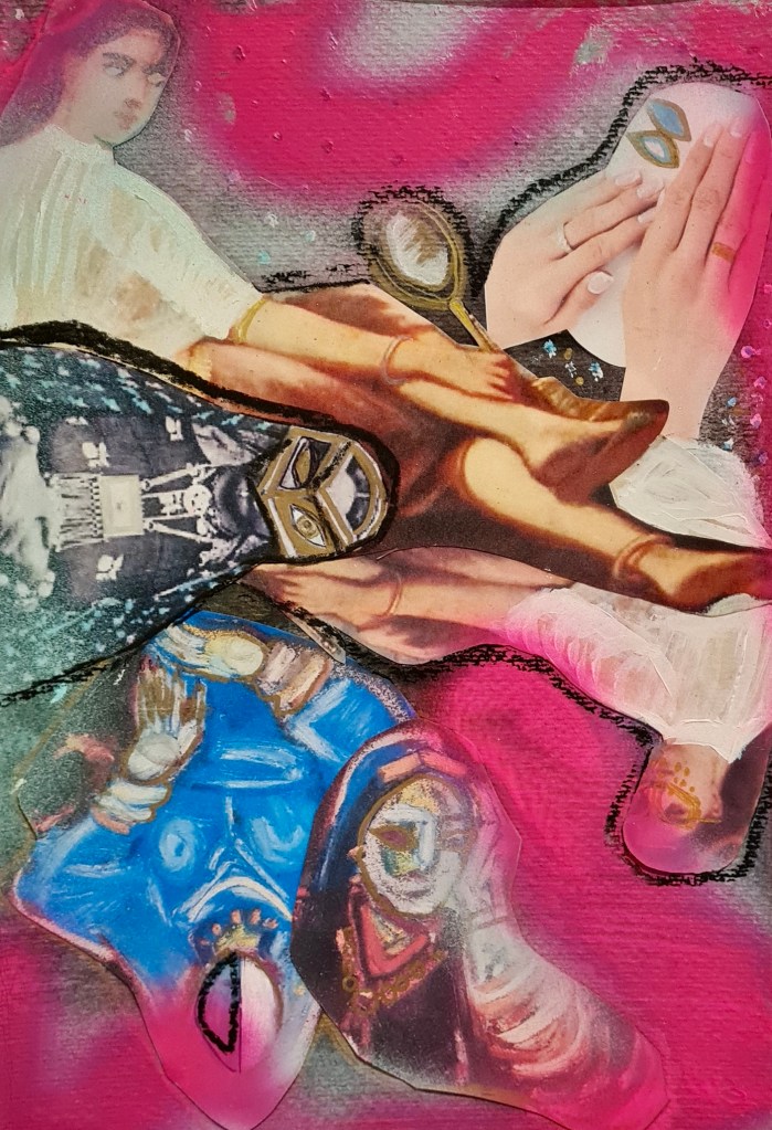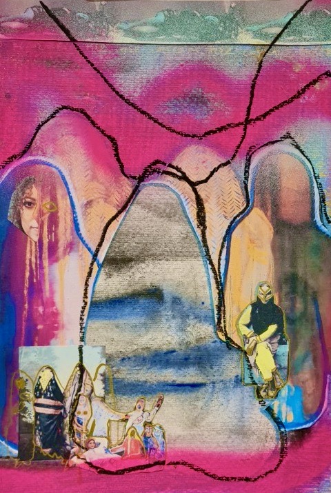 Pink skin, heart and land series, mixed media on paper, 30 h x 20 w cm, 2023