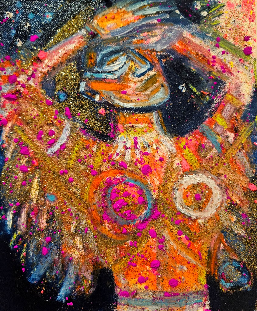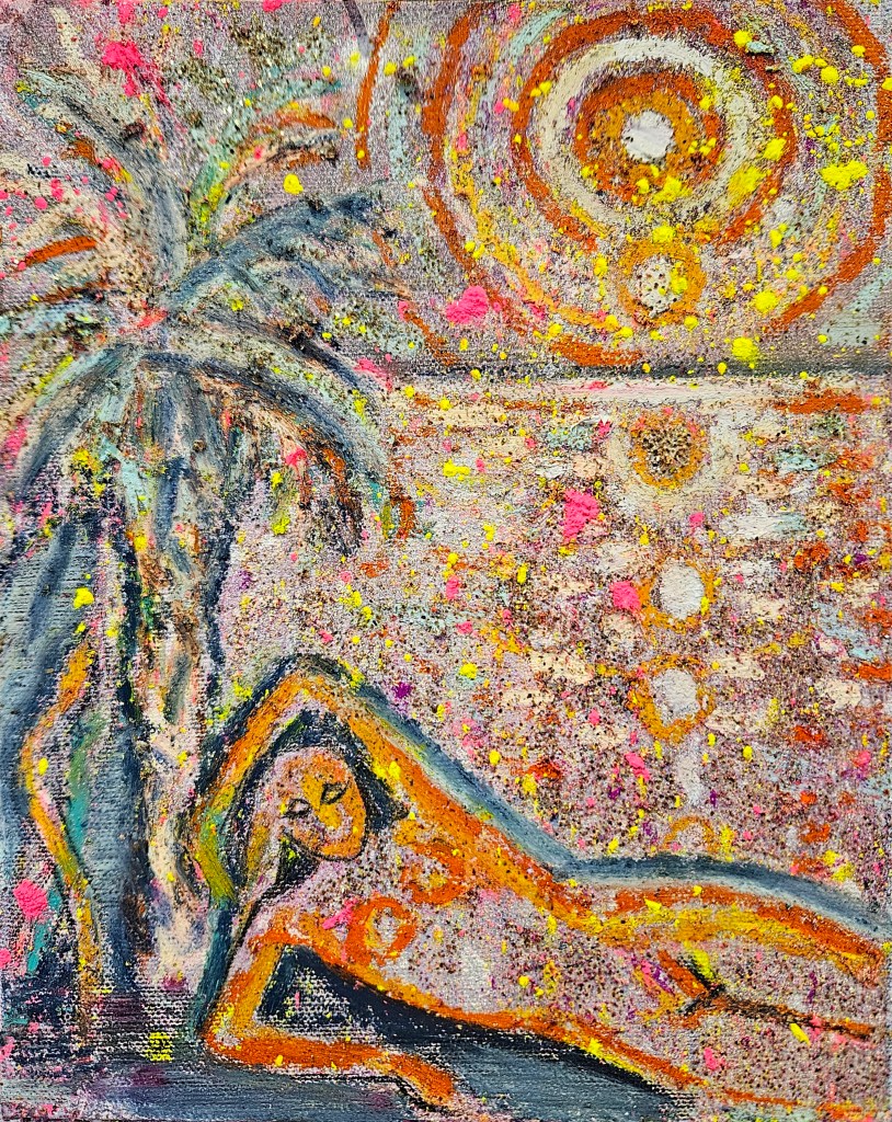Under the disco lights with you, 13w x 18h cm, oil on canvas, 2025, £390.
